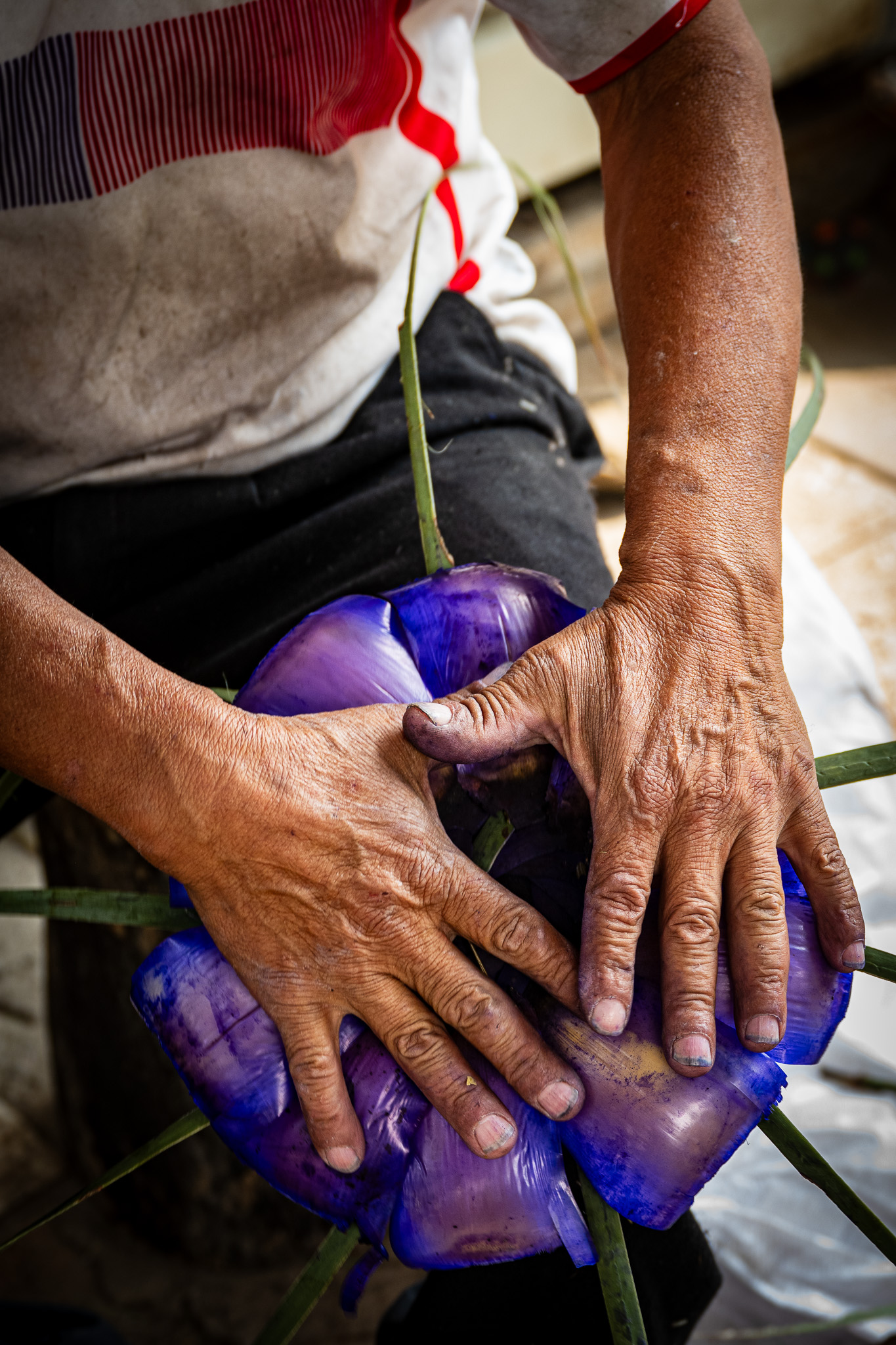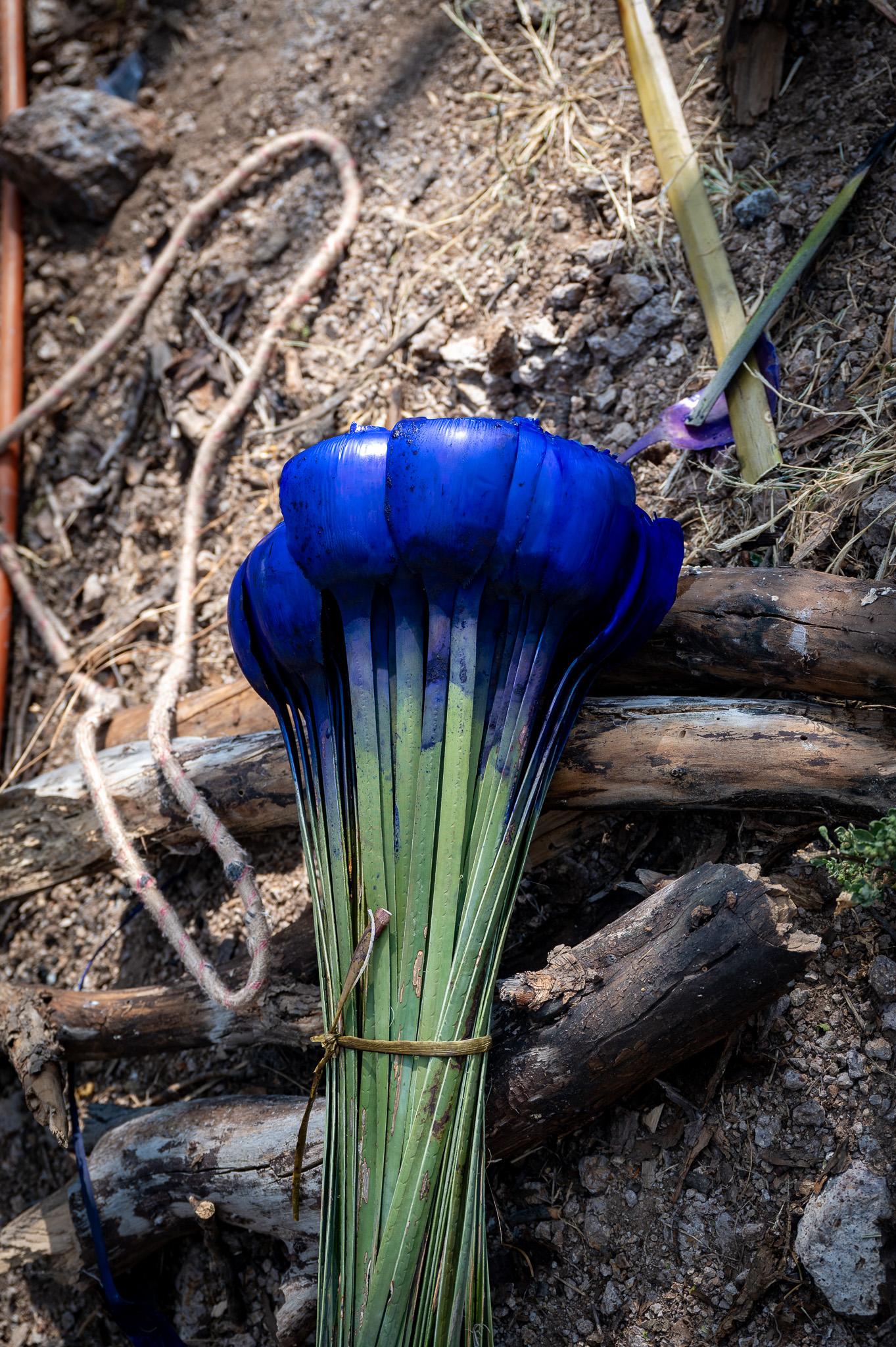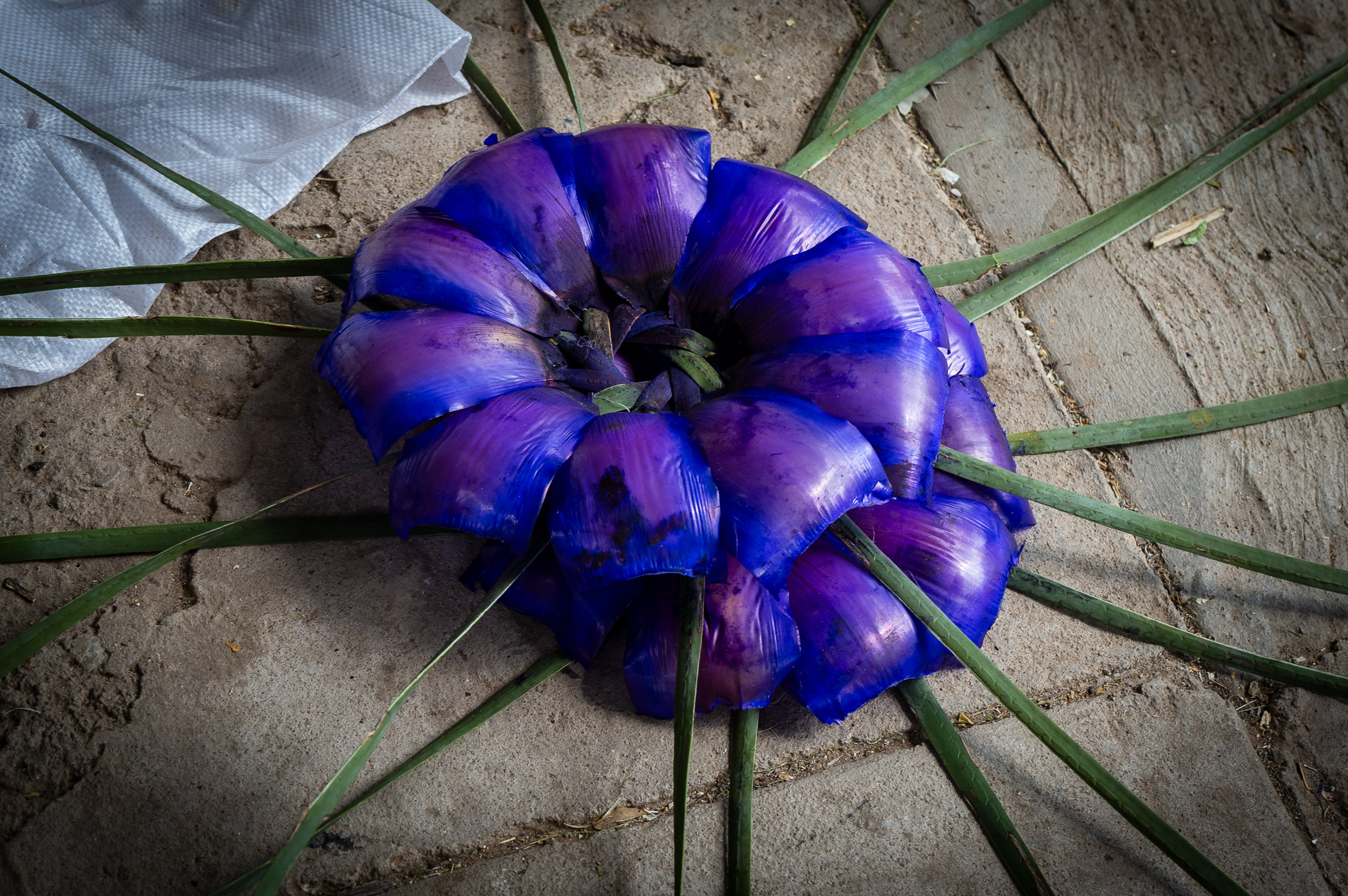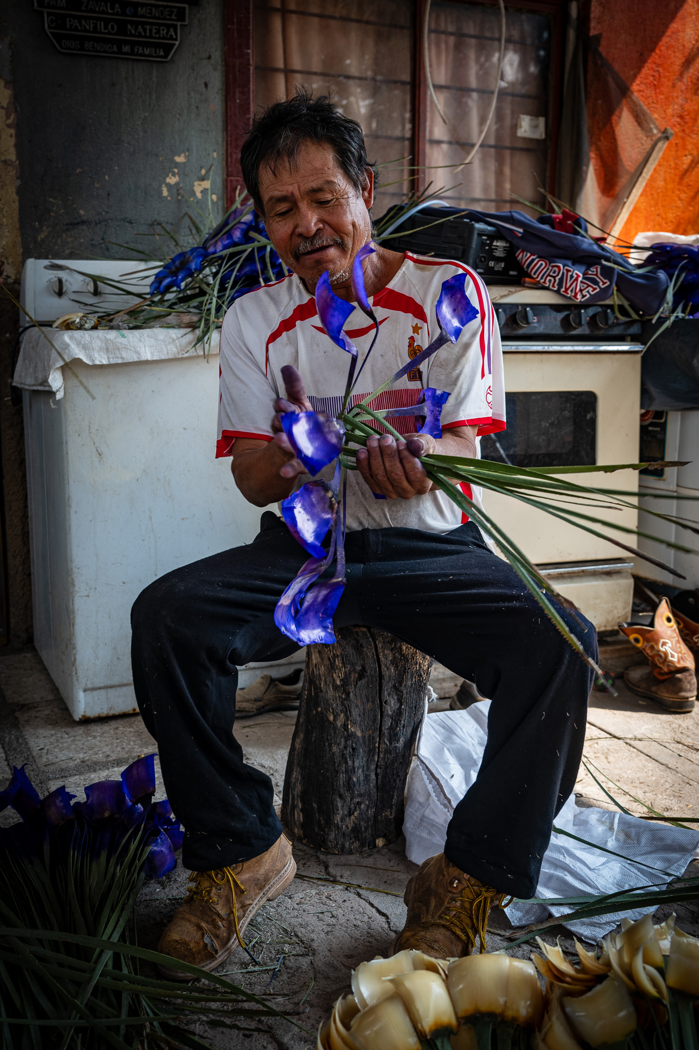 Su familia, además de cultivar calabazas para preparar dulces típicos de la temporada, mantiene viva una artesanía singular: la elaboración de la “flor de muertos”. Su hermano Domingo es quien confecciona esta flor a partir del sotol traído de la Sierra de San Miguelito, se trenza y se coloca en las lápidas durante el Día de Muertos. Los colores tienen significados especiales: el blanco generalmente se asocia con los niños, mientras que los adultos reciben otros tonos.