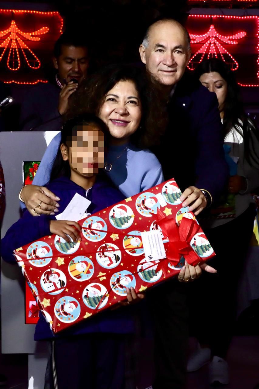 Alcalde Enrique Galindo y Senadora Estela Arriaga encienden Árbol de Navidad de la UAM y reparten juguetes a niñas y niños