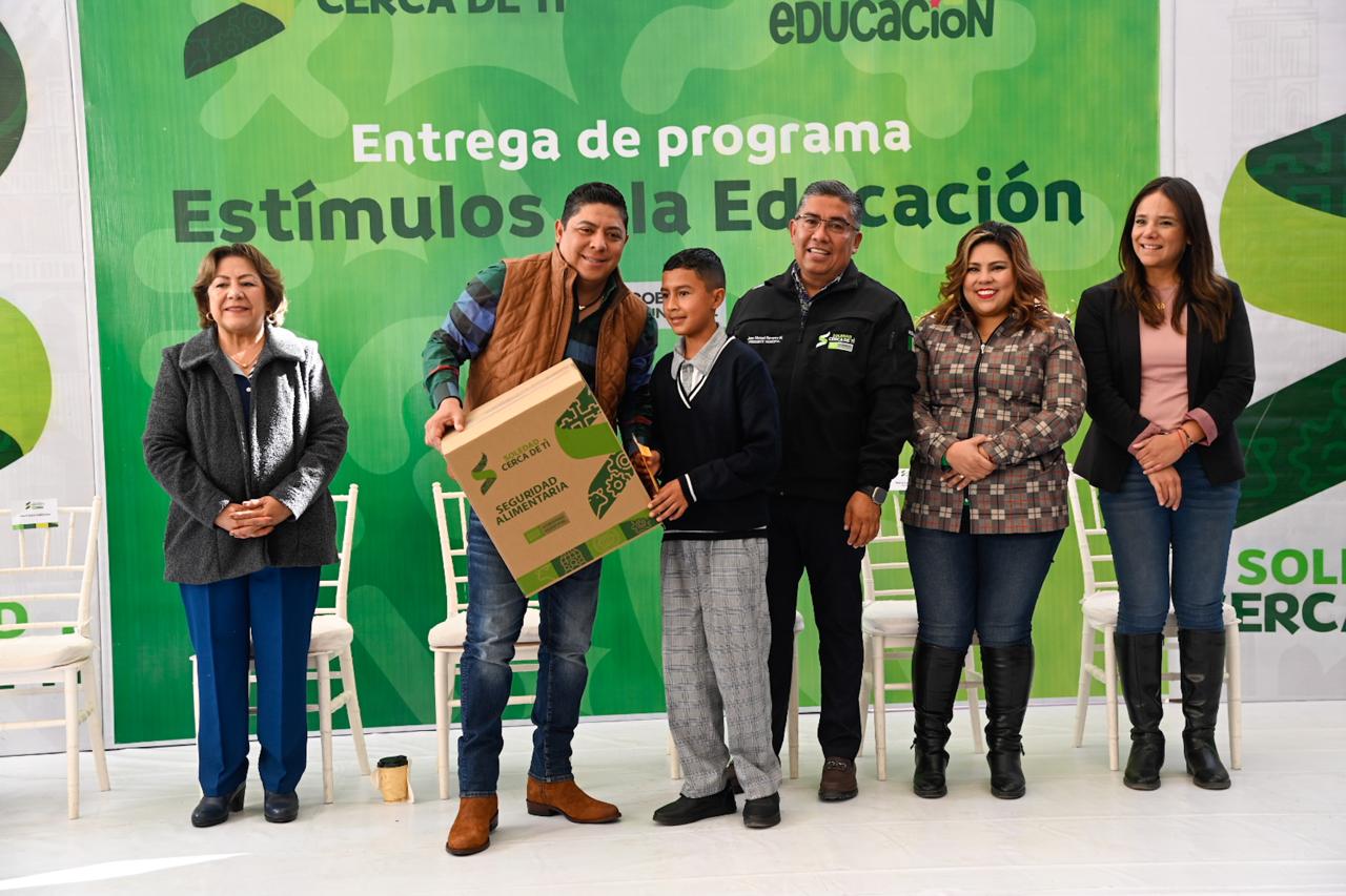 El Gobernador del Estado, Ricardo Gallardo Cardona, y el Alcalde Juan Manuel Navarro Muñiz entregaron apoyos económicos y despensas a estudiantes con promedios destacados, fortaleciendo la política social del municipio.