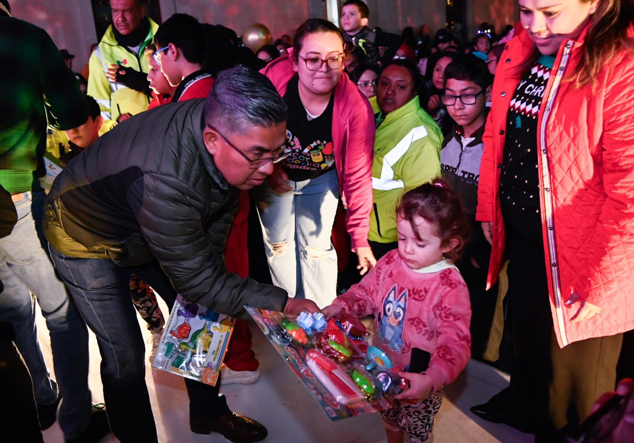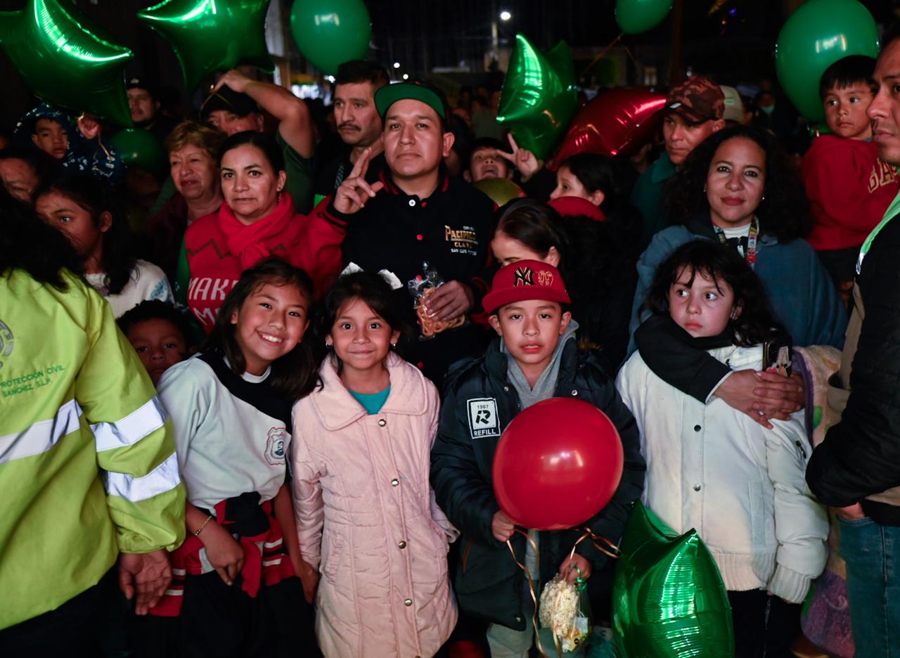 El evento, que reunió a familias enteras, también incluyó la entrega de juguetes y dulces por parte del Alcalde, acompañado de la Presidenta del DIF Municipal, María del Pilar Cardona Reyna, y legisladores locales y federales. Los asistentes pudieron disfrutar de la compañía de Santa Claus y personajes navideños, quienes recibieron cartas de niñas y niños mientras se tomaban fotos para recordar la mágica noche.