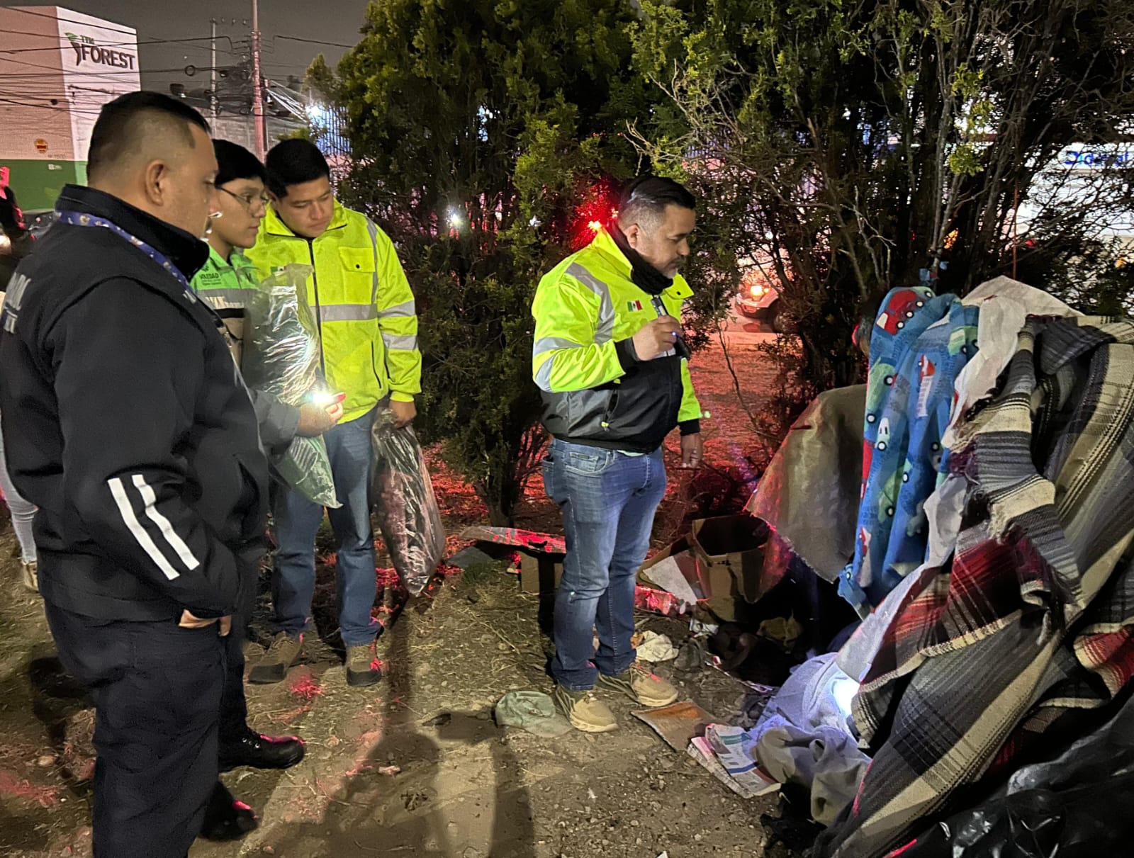 Durante la noche, personal de la Coordinación Municipal de Protección Civil realizó recorridos en las principales avenidas y zonas vulnerables, cumpliendo con la política de cercanía con la población y atendiendo a los sectores más desprotegidos.