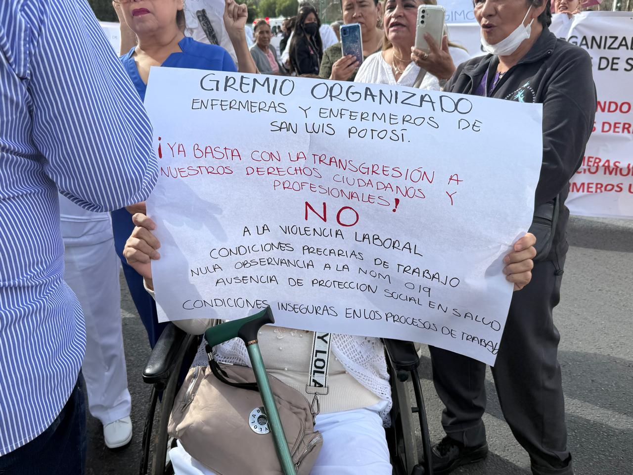 Enfermeras protestan en Hospital Central por pensiones congeladas y falta de claridad en transición hacia IMSS-Bienestar