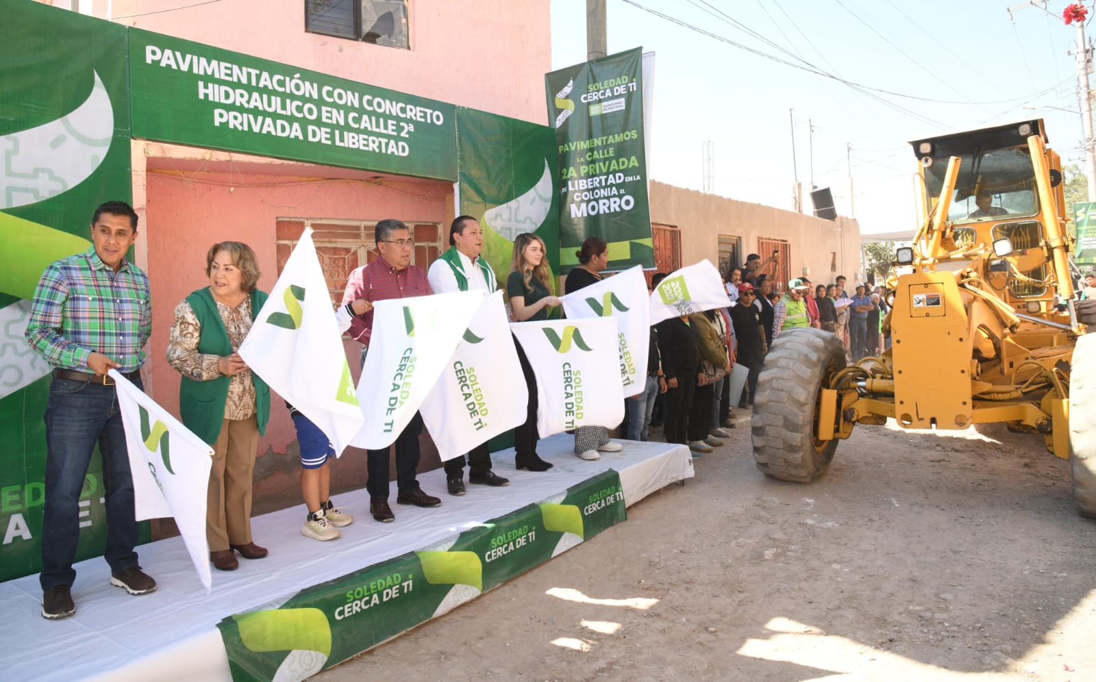 El Alcalde Juan Manuel Navarro Muñiz dio el banderazo para iniciar los trabajos con concreto hidráulico en la calle Segunda Privada de Libertad, una obra de más de 3.4 millones de pesos que beneficiará a más de 4,000 personas y revitalizará la infraestructura vial de Soledad de Graciano Sánchez.