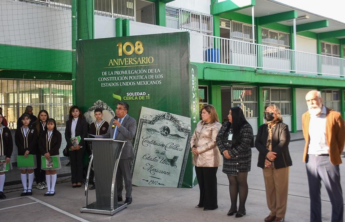 En un evento que resalta los valores fundamentales de la Carta Magna, se celebró el 108 aniversario de la promulgación de la Constitución Política de los Estados Unidos Mexicanos. La ceremonia, realizada en la Secundaria Técnica #79 de la colonia Cactus, reafirmó el compromiso de Soledad de Graciano Sánchez con los principios de justicia, igualdad y libertad.