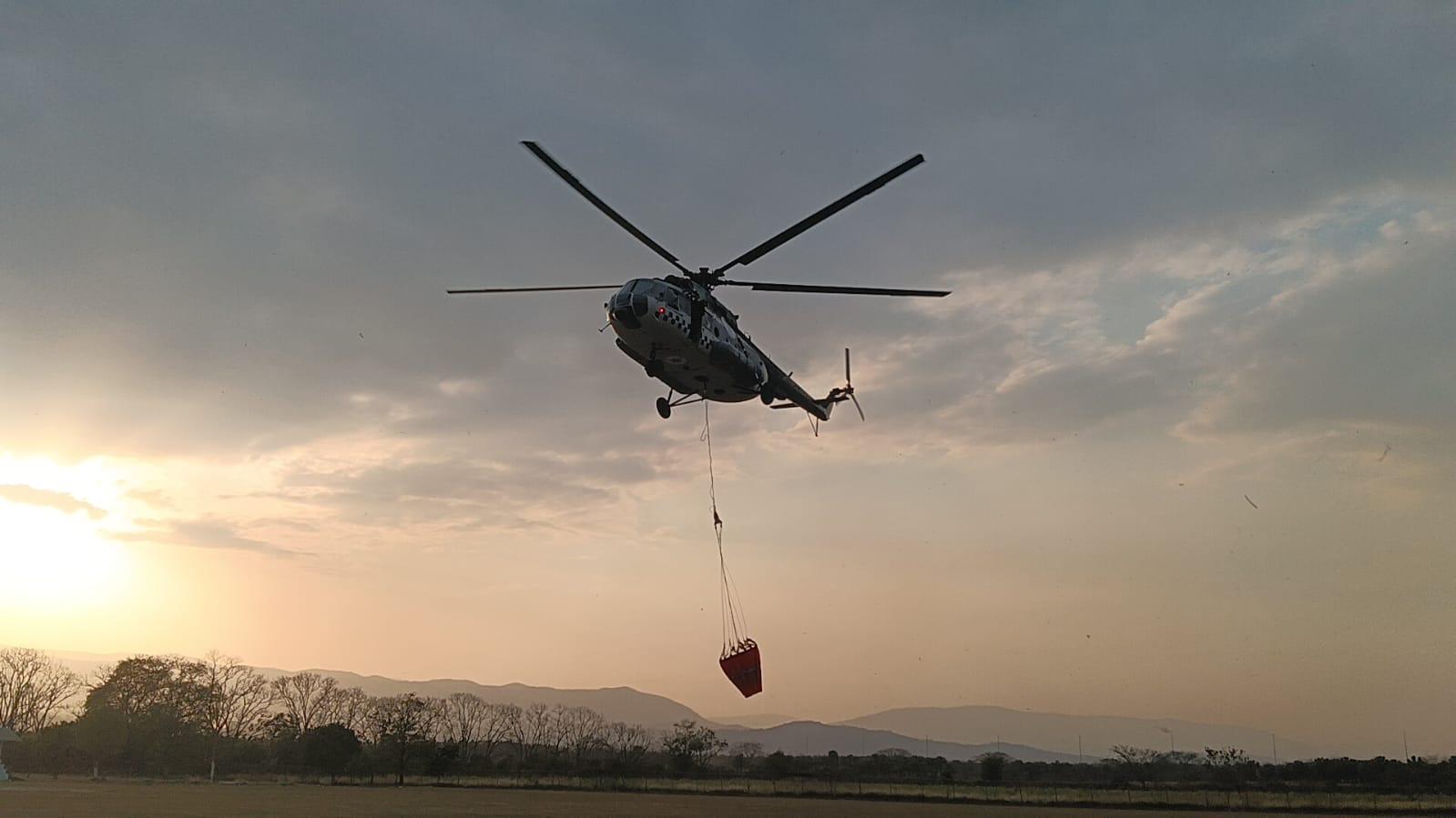 Para reforzar las actividades de combate a incendios, este miércoles arribó una aeronave de ala rotativa MI-17, la cual se unió a las brigadas que trabajan contra los siniestros, sumando esfuerzos con personas voluntarias y autoridades de los tres niveles de gobierno. Este jueves, el helicóptero realizó descargas de agua con helibalde en puntos críticos, además de efectuar reconocimientos aéreos y reubicaciones de brigadas de trabajo.