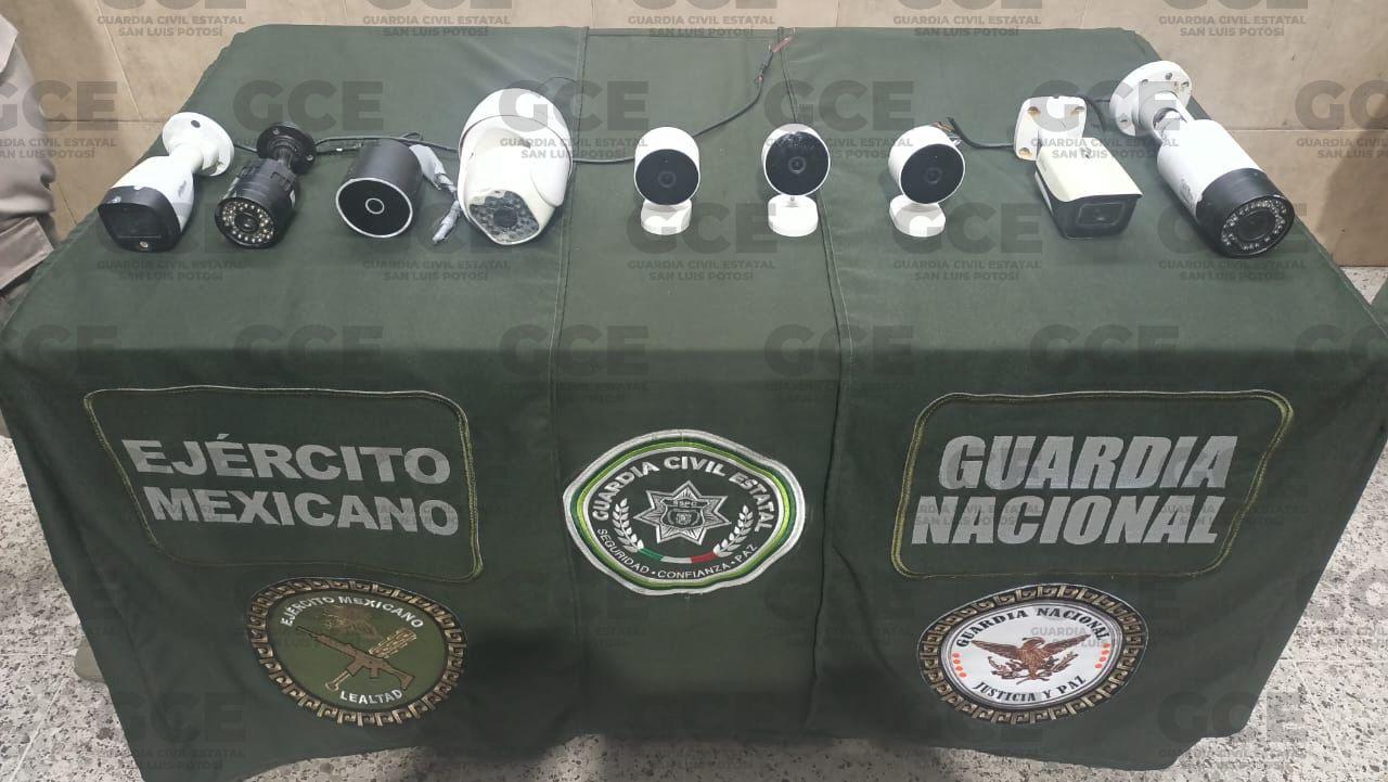 Guardia Civil Estatal, SEDENA y Guardia Nacional aseguran cámaras de videovigilancia presuntamente usadas por la delincuencia organizada