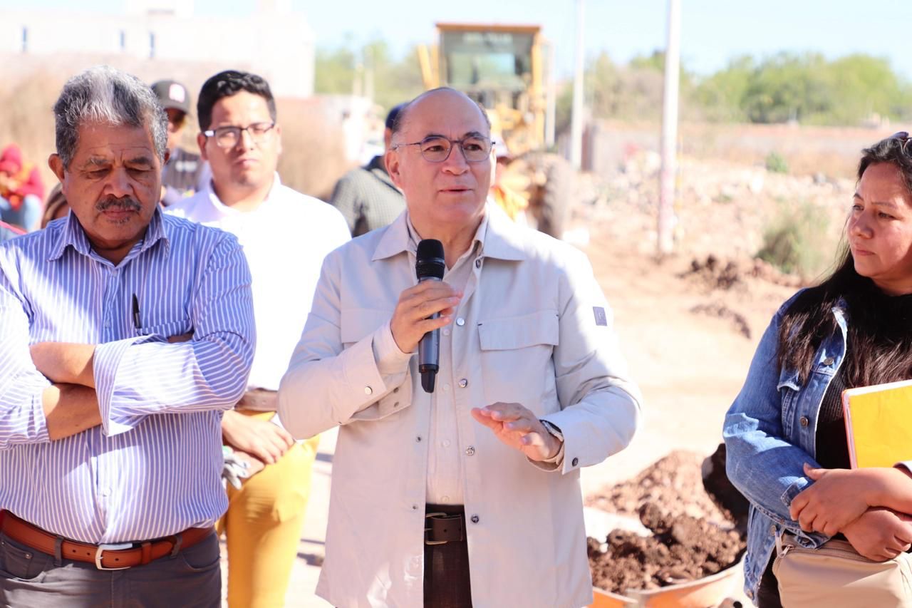 El Alcalde Enrique Galindo supervisa la construcción de la calle Héroes del Cuarenta y Siete, con pavimentación y red de agua potable y drenaje