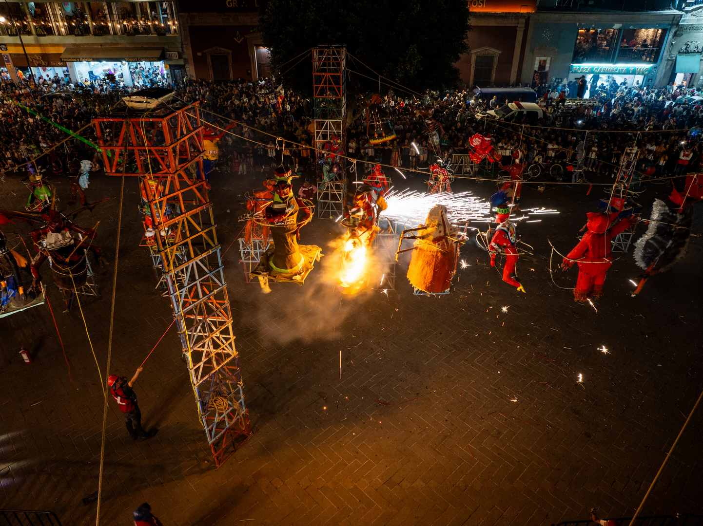 La Plaza del Carmen se iluminó con 37 figuras ardientes y un encuentro de danzas que evocó el legado prehispánico