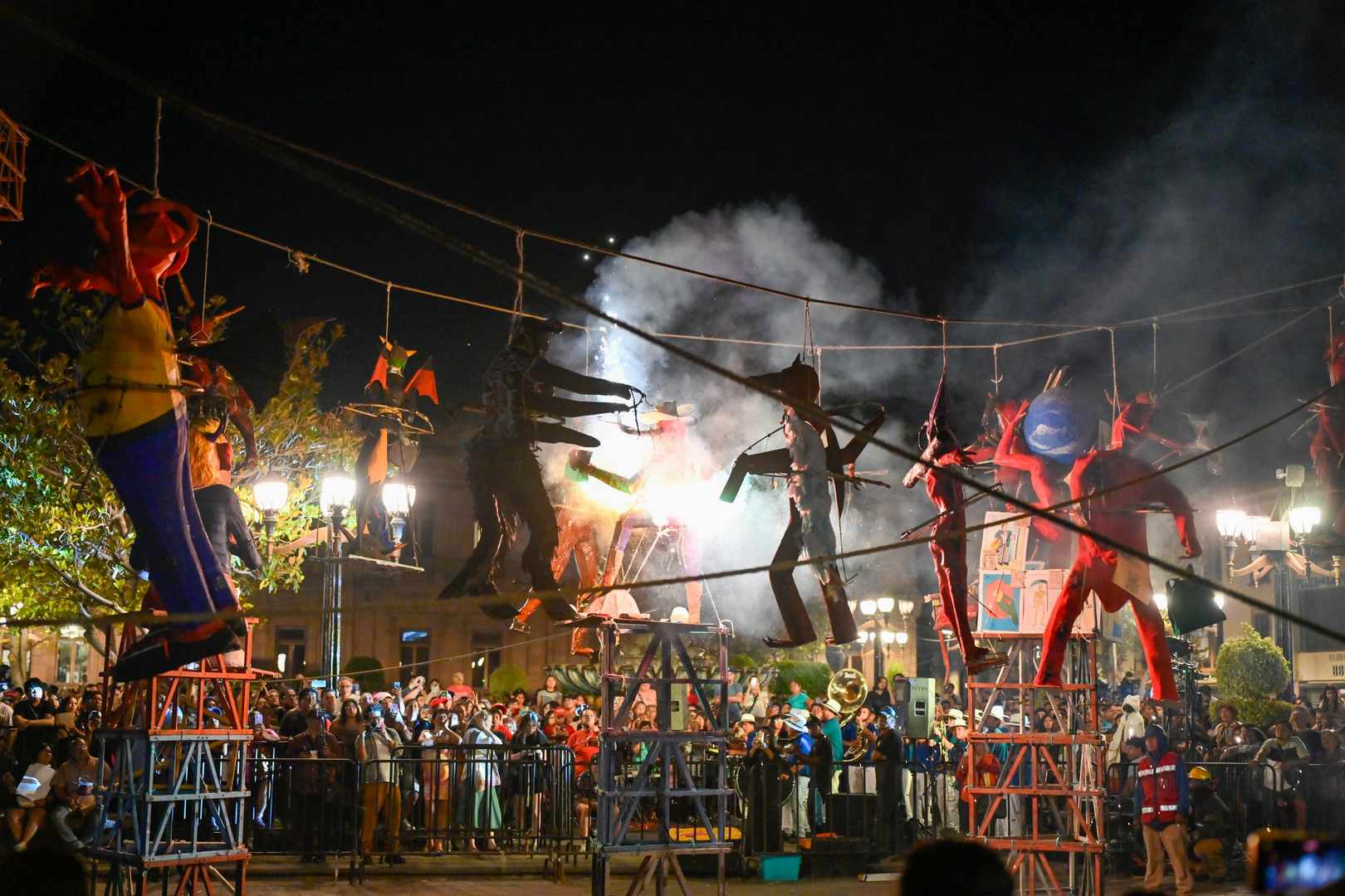 El evento musical estuvo a cargo de la Banda de Música del Gobierno del Estado y la Banda 11 Vientos, cuyos ritmos acompañaron el crepitar del fuego y el resplandor de las bengalas. “El retumbar de los instrumentos amplificó la magia de la noche”, comentaron asistentes.