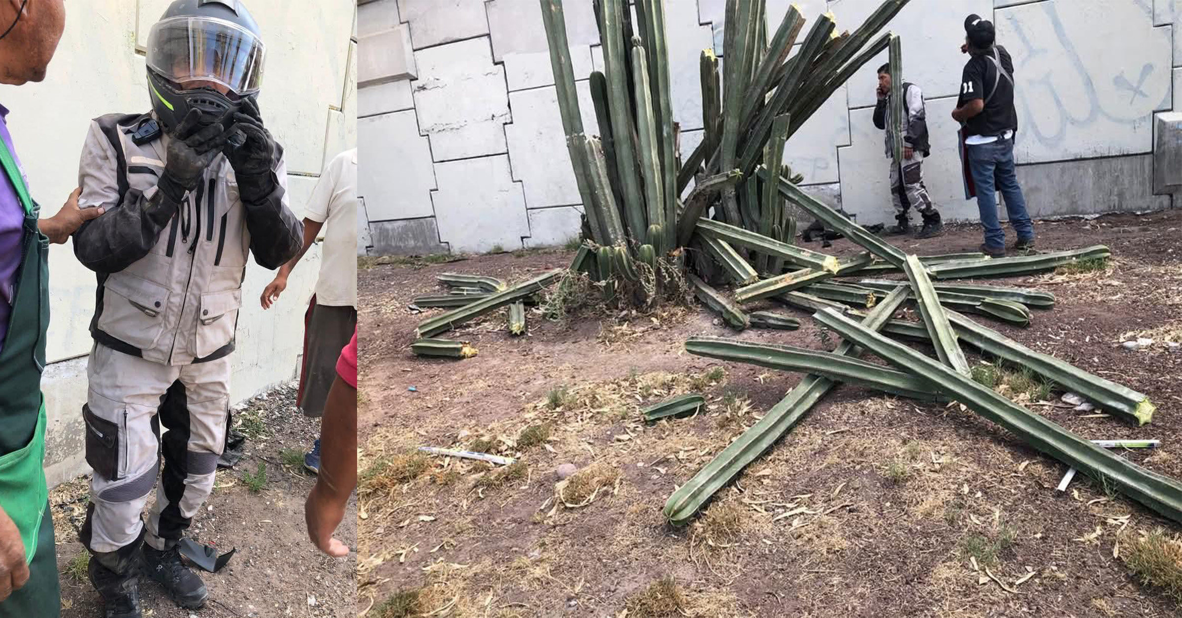 Según testigos, el conductor —que permanece bajo reserva de identidad— circulaba en dirección poniente cuando un vehículo lo “empujó”, lo que provocó que perdiera el control y cayera de costado desde el puente. La motocicleta quedó sobre la carpeta asfáltica, mientras que el piloto cayó varios metros desde la cima del puente y encima de las cactáceas.