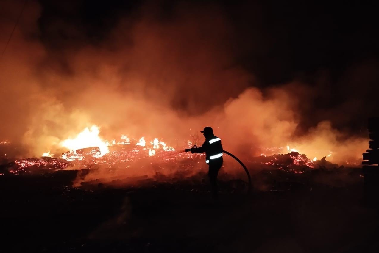 Personal de Protección Civil Municipal y Bomberos coordinan esfuerzos para combatir el siniestro en una empresa maderera