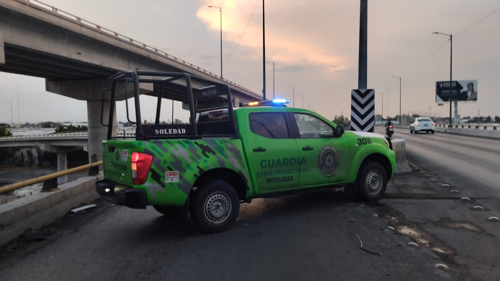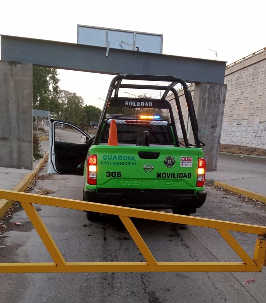 La Dirección de Seguridad Vial y Movilidad de la Guardia Civil Municipal de Soledad cerró la vialidad desde Circuito Potosí hasta el Puente Naranja debido a fuertes escurrimientos; se reportan solo daños materiales.