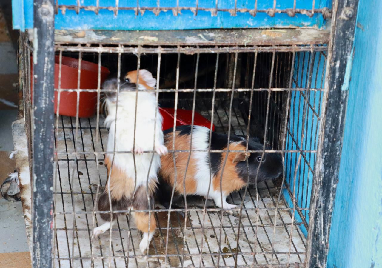 6 gatos, 2 cuyos y 1 conejo confinados en espacios inadecuados.