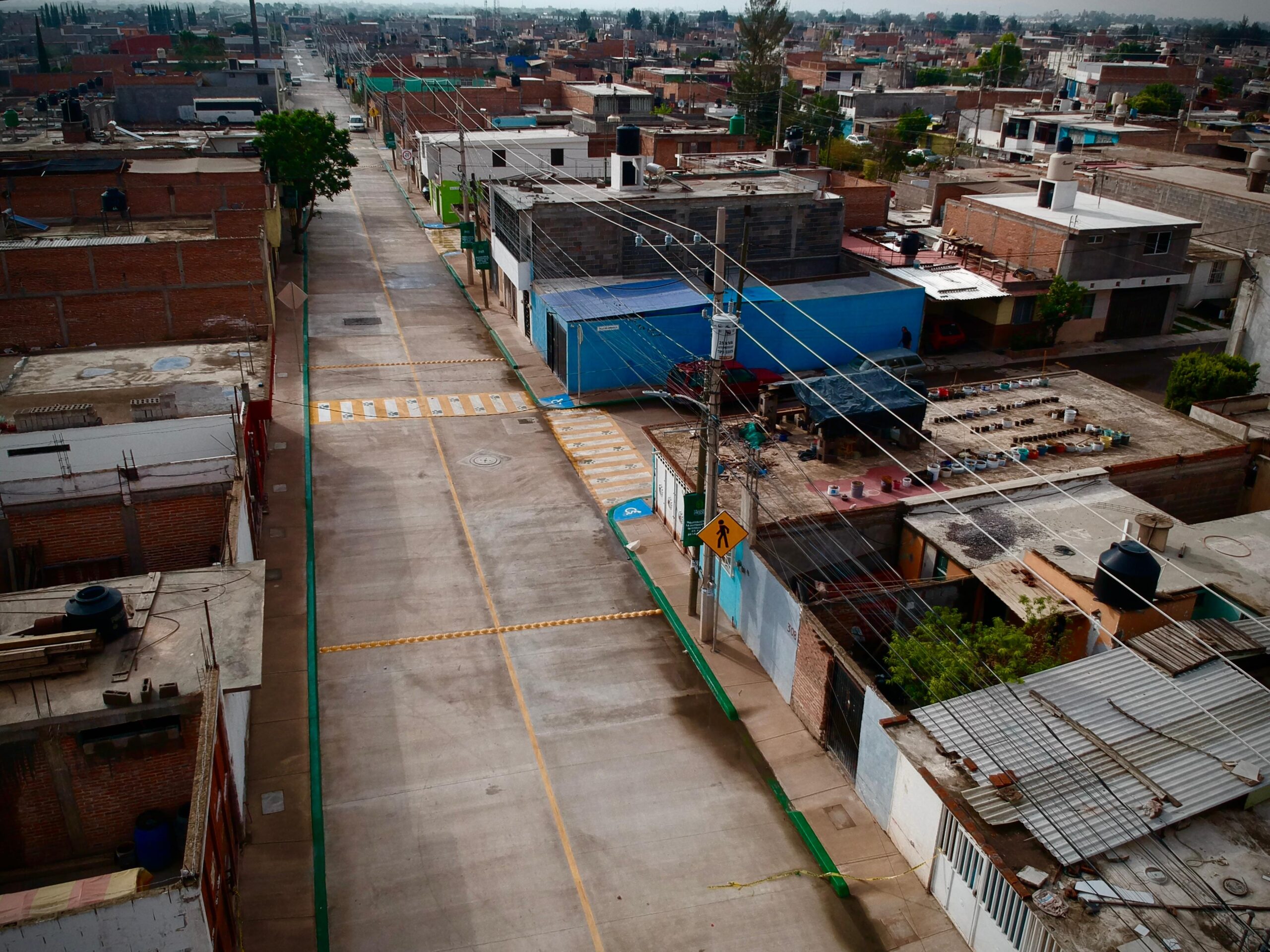 Pavimentan la Av. Paseo de las Recuas con concreto hidráulico: obra beneficia a más de 5 000 habitantes en Villa de Pozos