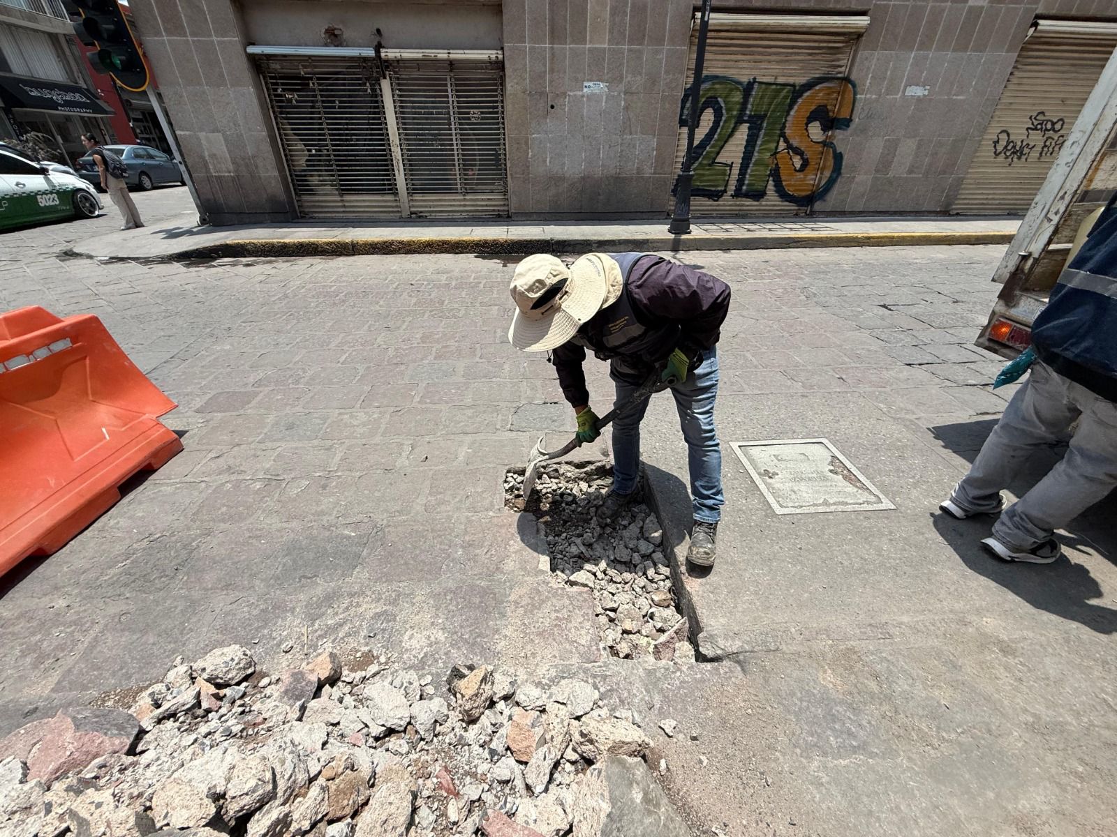 Bacheo en Independencia y Miguel Acosta refuerza la conservación del Centro Histórico de San Luis Potosí