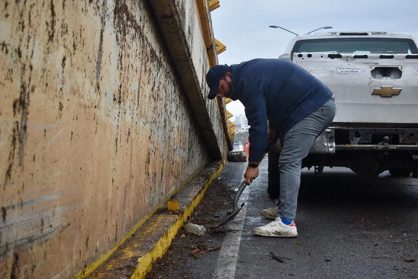 El Presidente Municipal Enrique Galindo Ceballos supervisó este miércoles la glorieta de la salida a Guadalajara, donde cuadrillas municipales concluyeron el retiro de agua y desechos provocados por las lluvias extraordinarias registradas durante la mañana y el mediodía.