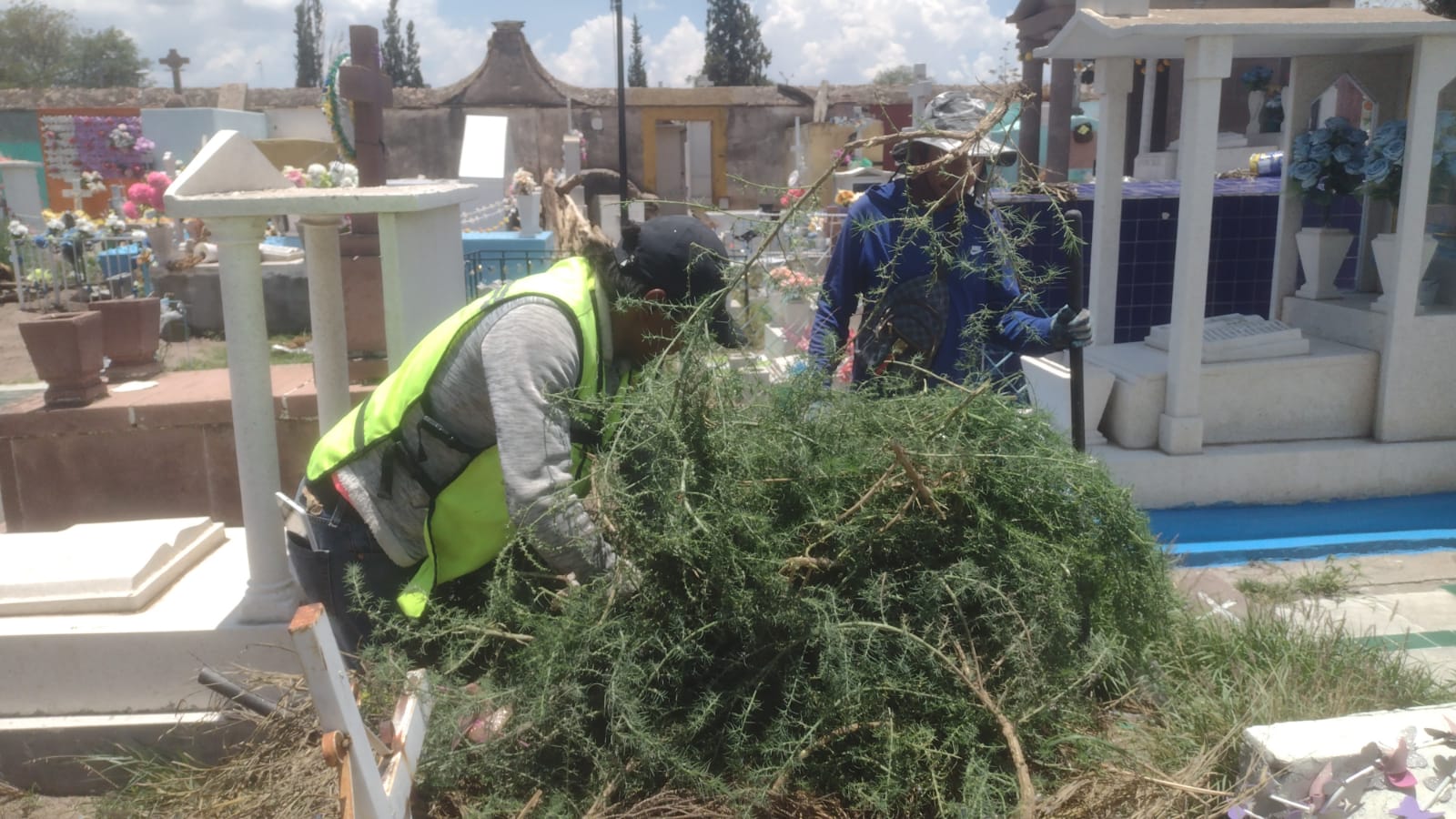 El Gobierno de Villa de Pozos, a través de la Dirección de Panteones, emprendió una jornada de limpieza en los panteones Municipal, Jardín de Descanso y Panalillo para atender los daños ocasionados por las recientes precipitaciones.
