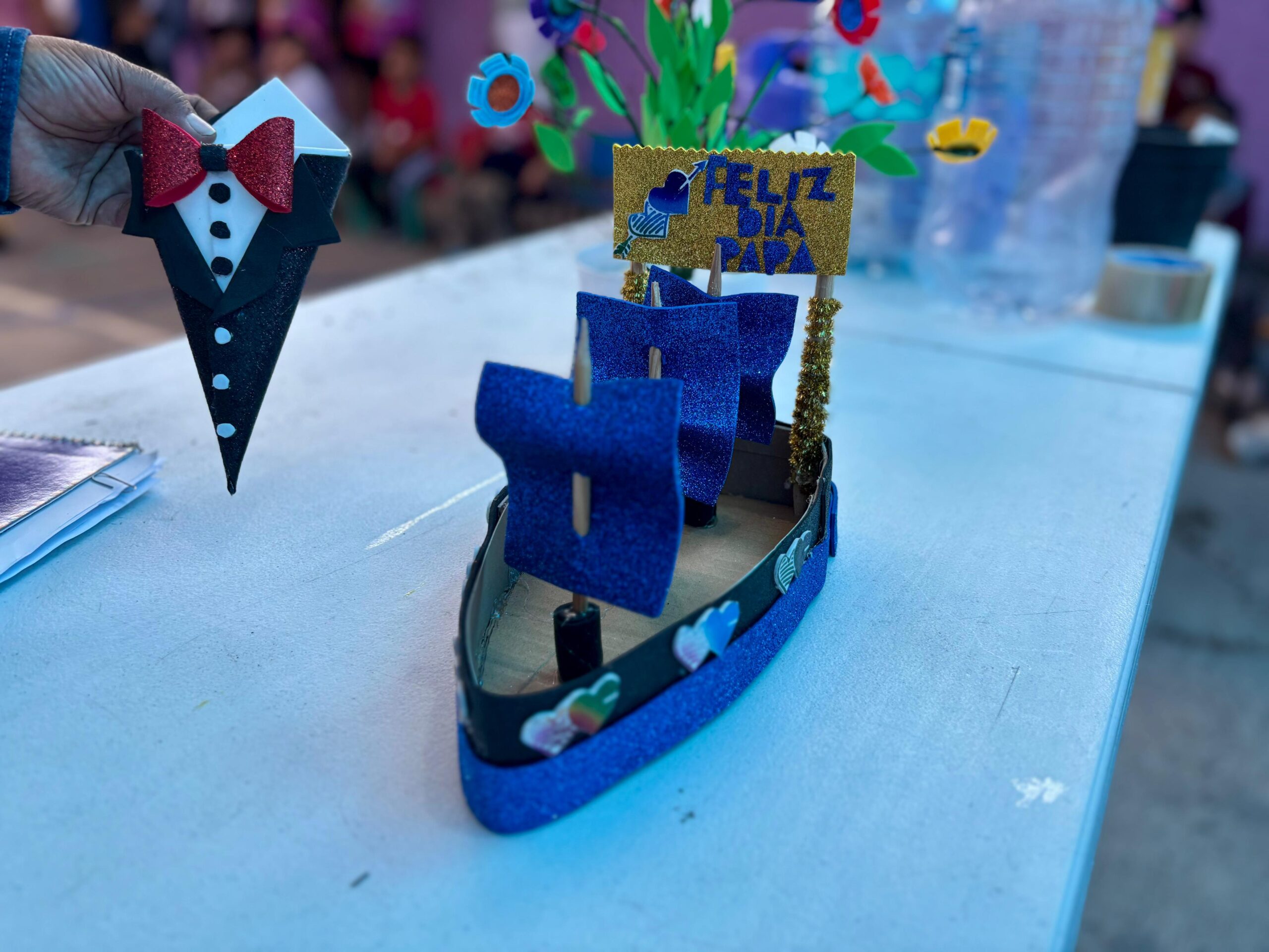 Como parte complementaria, las y los menores elaboraron decoraciones ecológicas con materiales reciclados que servirán como obsequios con motivo del Día del Padre, sumando un componente creativo y sustentable a la jornada.