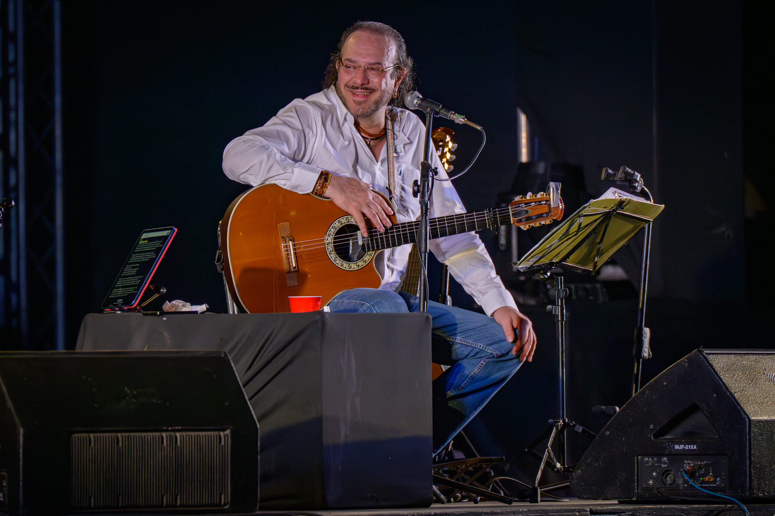 Desde el primer momento, ambos trovadores capturaron la atención del público mediante un innovador formato de presentación, alternando canciones en un duelo amistoso que arrancó con la voz de Alejandro Filio. Este estilo dinámico permitió una interacción continua y especial entre los artistas y los asistentes, quienes respondían entusiasmados a cada interpretación.
