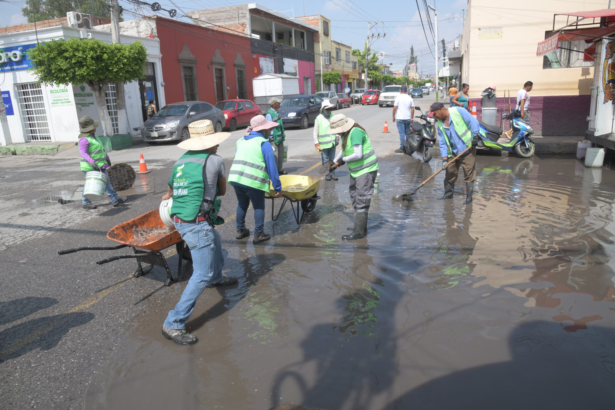 Ante las lluvias intensas que se registran en el municipio, el Ayuntamiento de Soledad de Graciano Sánchez desplegó cuadrillas de la Dirección de Servicios Municipales para redoblar las labores de limpieza, desazolve y barrido general en colonias vulnerables.