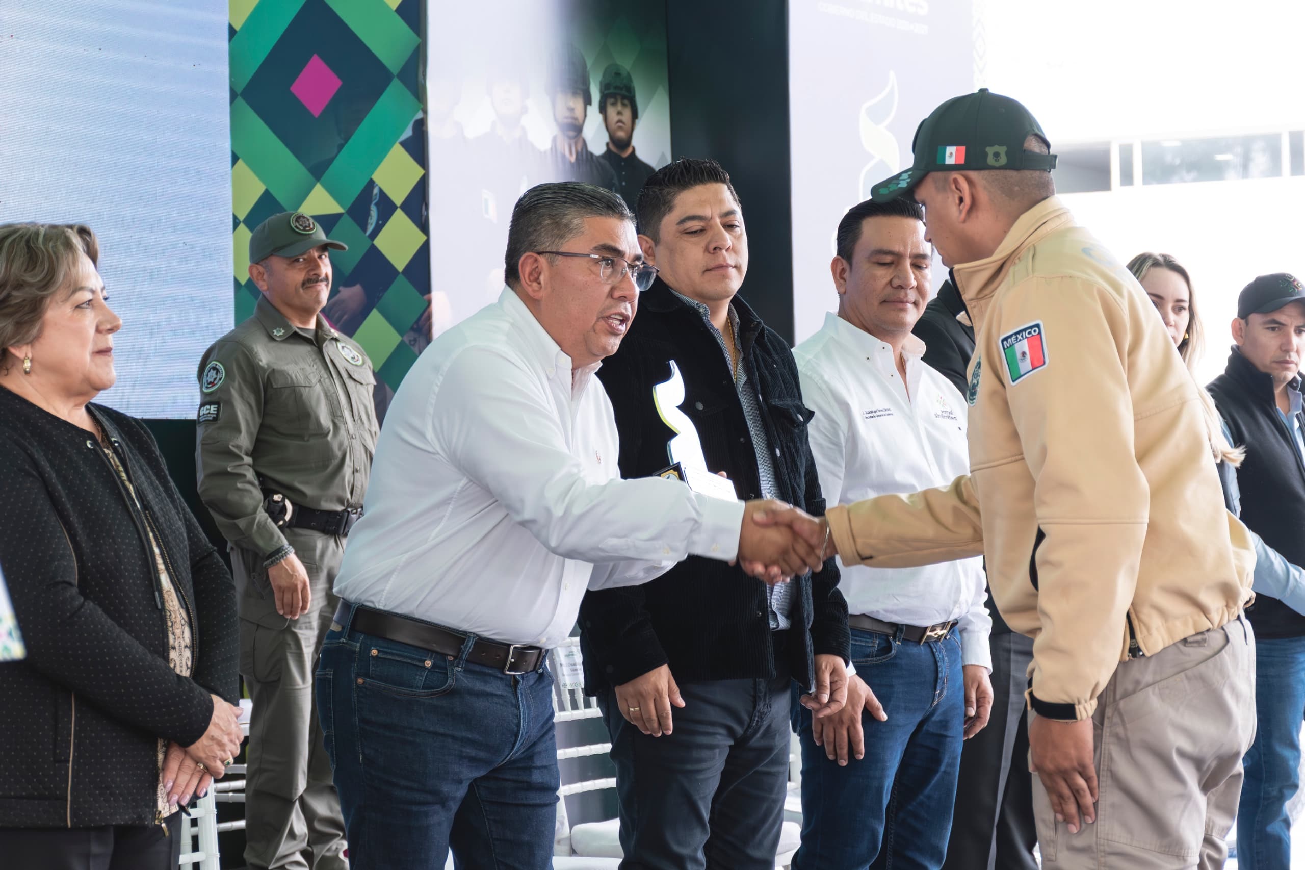 Durante la ceremonia de Reconocimiento al Mérito Policial y Entrega de Incremento Salarial, encabezada por el Alcalde Juan Manuel Navarro Muñiz y el Gobernador Ricardo Gallardo Cardona, se distinguió a cuatro integrantes de la Guardia Civil Municipal de Soledad de Graciano Sánchez por actuaciones destacadas en servicio: