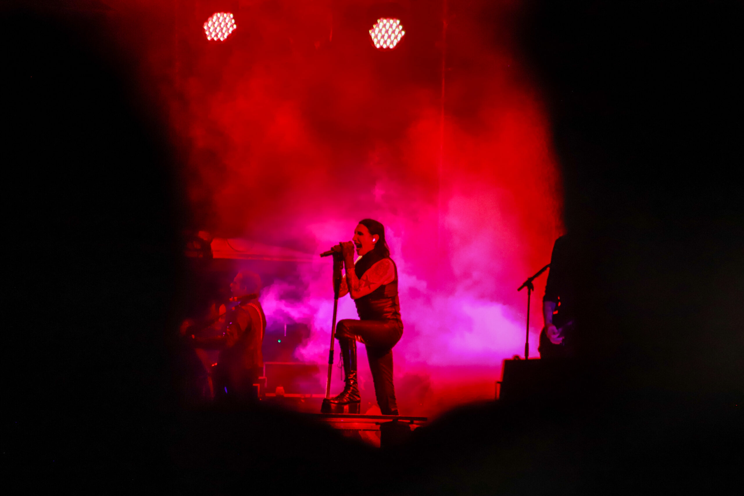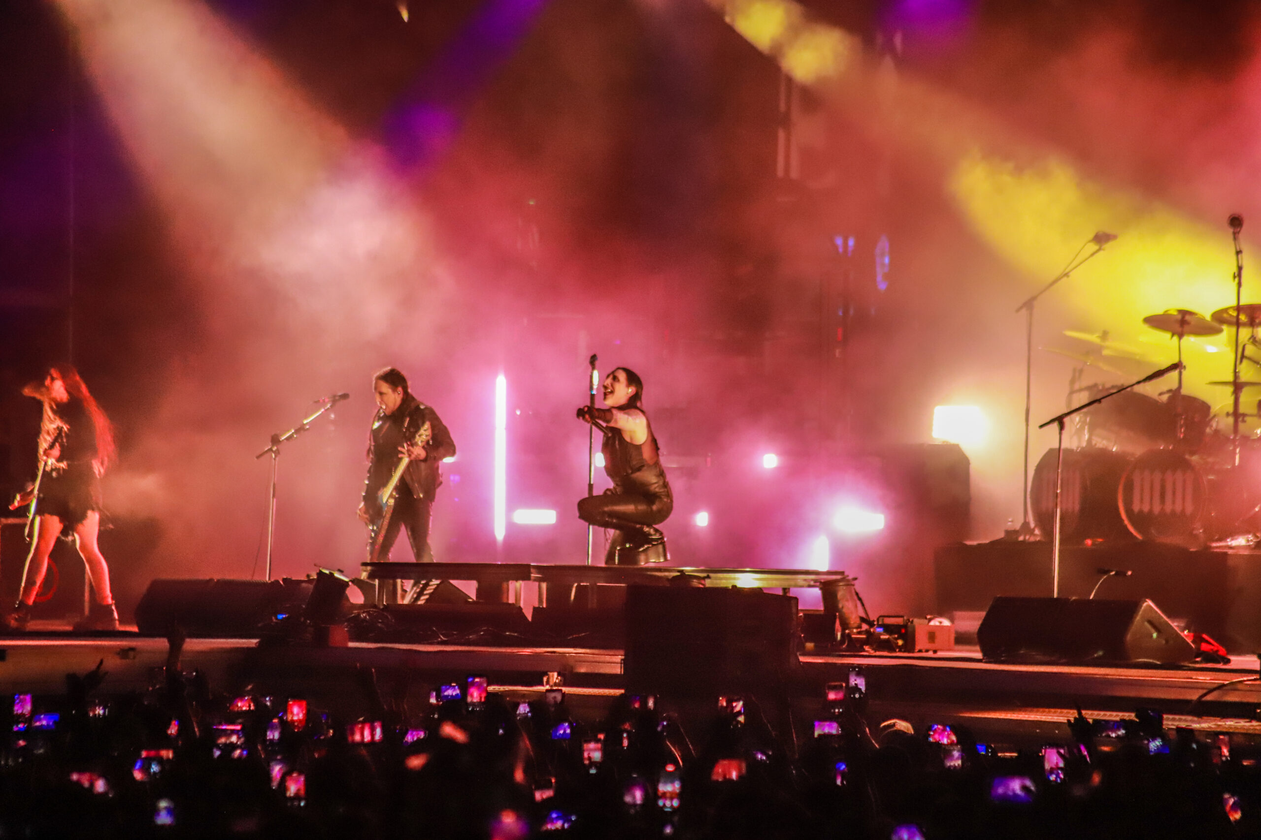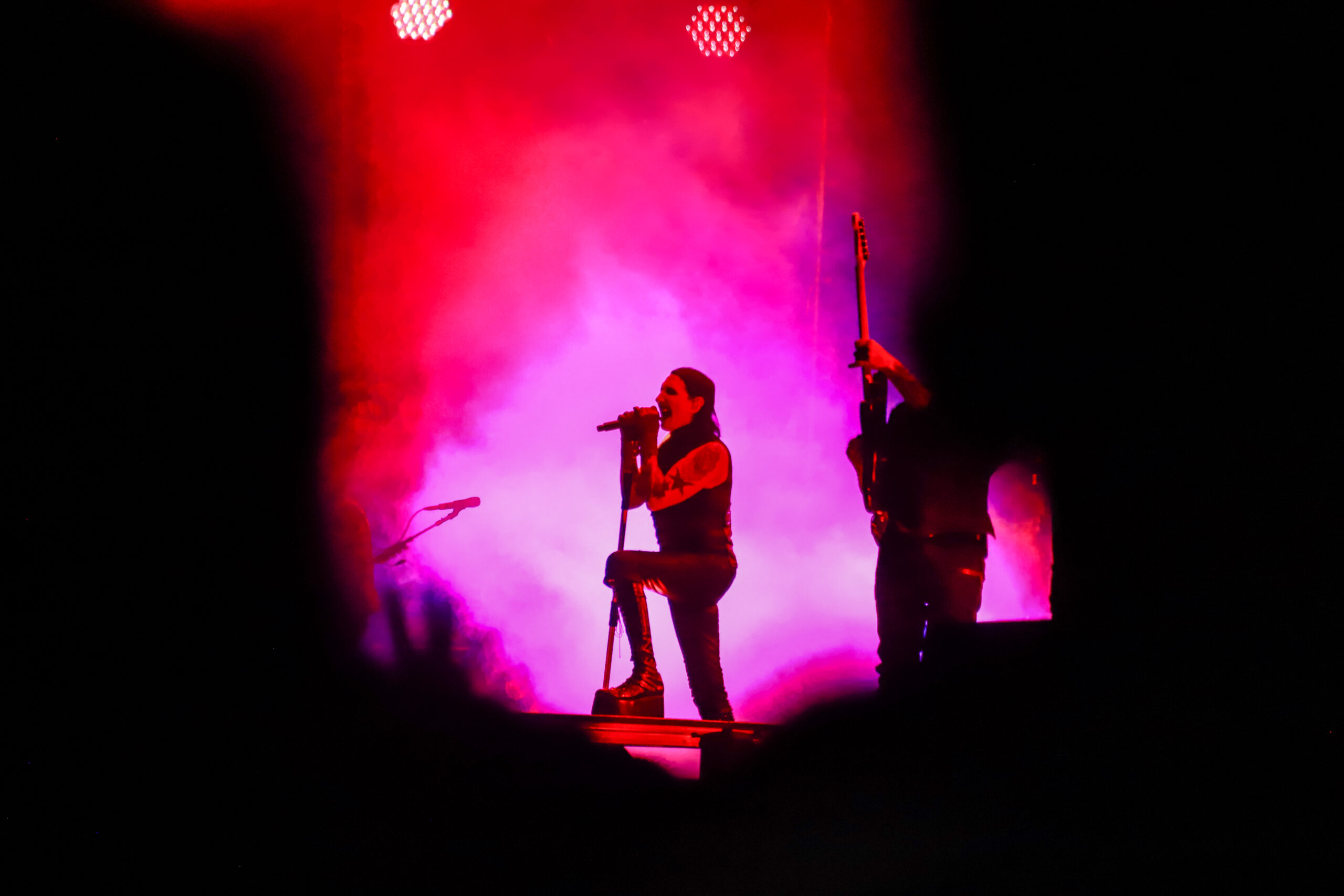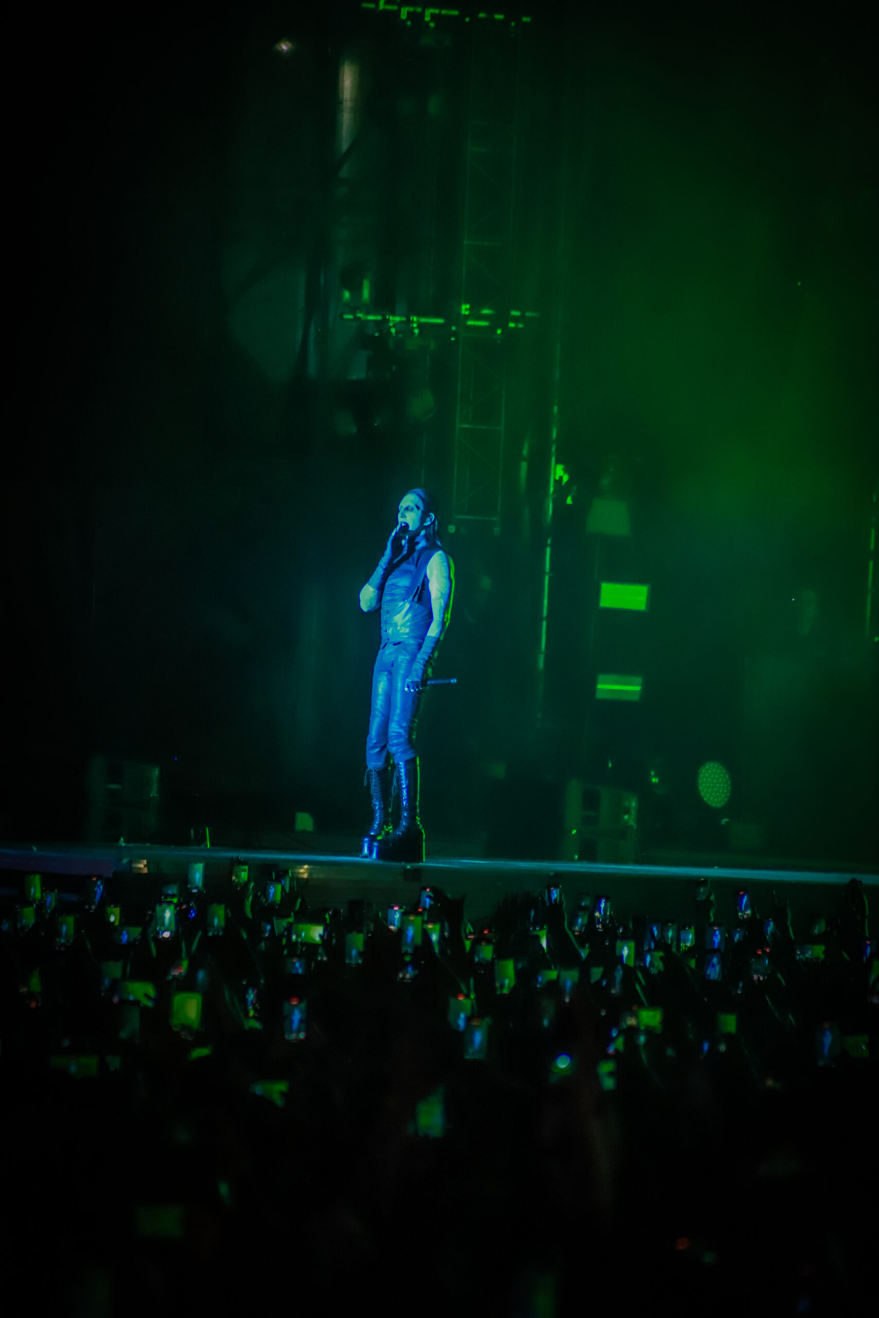 El concierto comenzó a las 21:00 horas con un despliegue de luces rojas y efectos de humo, seguido de interpretaciones de temas como Nod if you Understand, Disposable Teens, Angel with the Scabbed Wings, Tourniquet, Meet Me in Purgatory y The Beautiful People. El ambiente mantuvo la intensidad durante toda la presentación, en la que Manson conservó su estética característica.