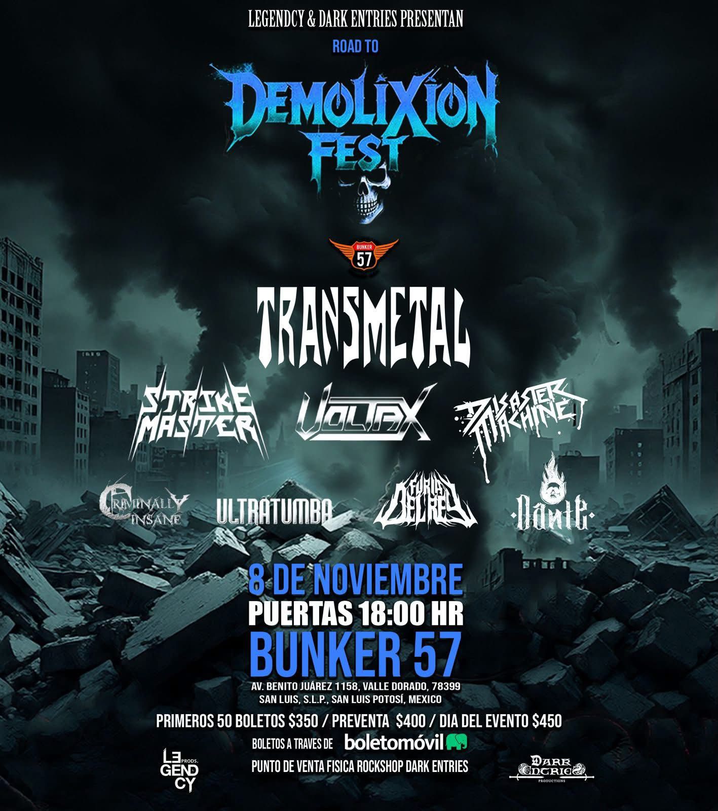 El evento se realizará el viernes 8 de noviembre de 2025 en el Bunker 57 SLP (Av. Benito Juárez 1158, Valle Dorado), con un cartel de lujo que reúne a bandas emblemáticas del metal mexicano: Transmetal, Strike Master, Voltax, Disaster Machine, Criminally Insane, Ultratumba, Furia del Rey y Dante.