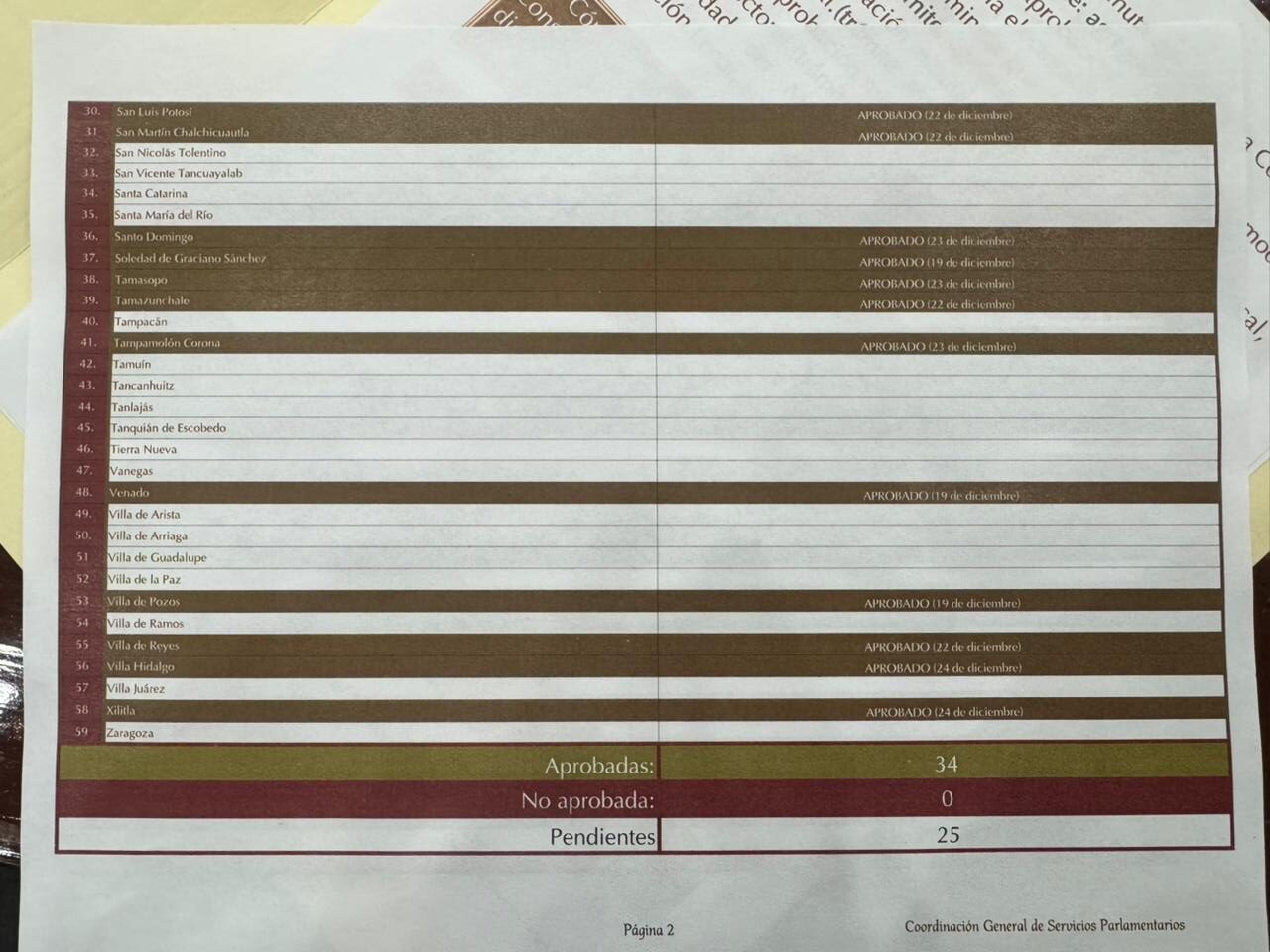 De acuerdo con el documento oficial de seguimiento proporcionado, entre los municipios que ya validaron la reforma se encuentran San Luis Potosí capital, Soledad de Graciano Sánchez, Santa María del Río, Tamuín, Tampamolón Corona, Venado, Villa de Reyes, Villa de Ramos, Villa Hidalgo, Villa Juárez, entre otros ayuntamientos de la Zona Centro, el Altiplano y la Huasteca.