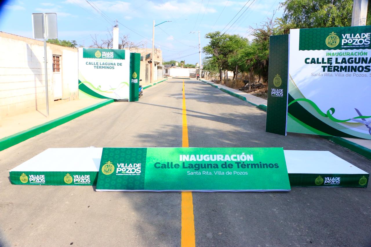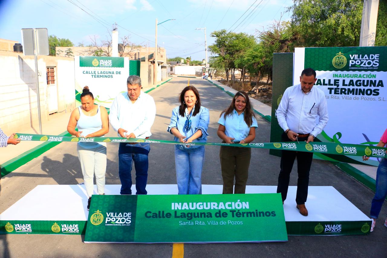 La presidenta concejal de Villa de Pozos, Paty Aradillas Aradillas, entregó la rehabilitación de la calle Laguna de Términos, en beneficio de más de 2 mil habitantes de la comunidad de Santa Rita, como parte de las acciones para fortalecer la infraestructura vial en el municipio.